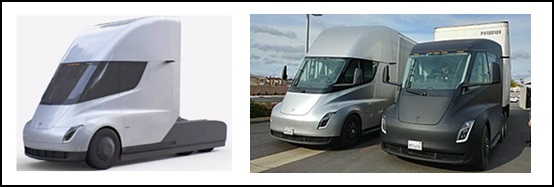 2017年4月,Tesla發表Semi卡車的預告圖片(如圖7右側),Nikola認為該卡車與Nikola One(如圖7左側)構成實質近似。2017年11月,Nikola發函給Tesla,確實告知Nikola One的這些設計申請了設計專利且正在審核中,要求Tesla在侵權爭議解決之前不會公佈其Semi卡車。Tesla並未回應。