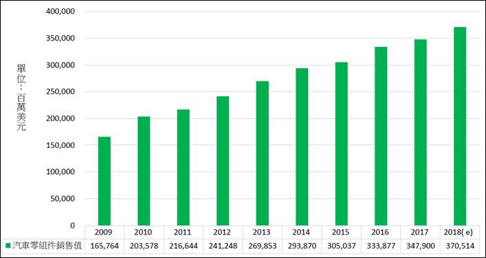 2018年台灣汽車零組件產值2,061億元、年成長3.1%