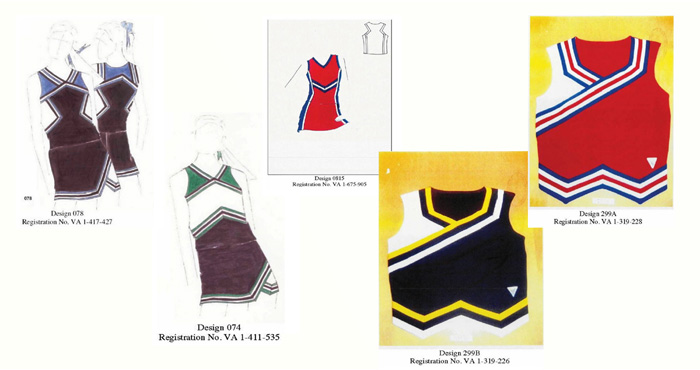本案原告Varsity公司,是設計及製造啦啦隊服及其他運動用品的公司。Varsity設計好款式後,會將其目錄放在網路上,供消費者挑選款式、自己配色。本案涉及的系爭著作,是五個由Varsity所設計的啦啦隊服設計圖,都曾向美國著作權局註冊登記,而美國著作權局也接受其登記,認為屬於圖形著作[7] 。