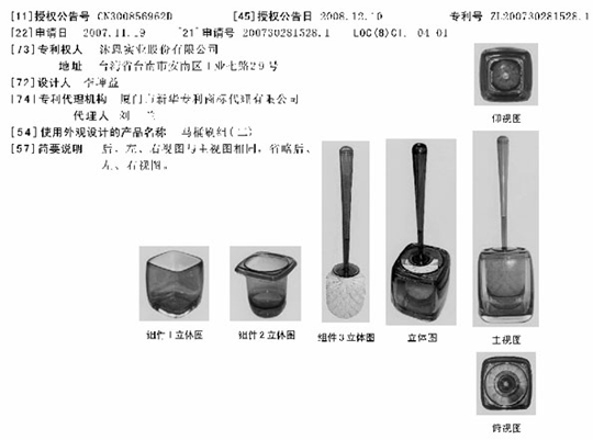 | 圖二:專利號為200730281528.1的馬桶刷組(二)為組件產品。 |