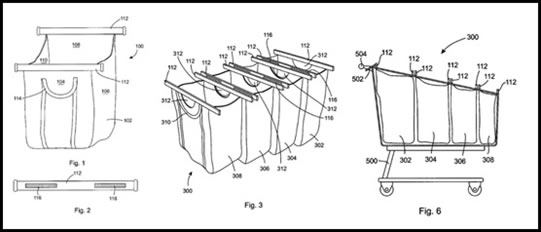 Doyle专利是Paul Doyle于2009年9月18日提交的爱尔兰专利申请No. S2009/0718是针对「可重复使用的袋子系统」,2010年8月18日公告[7],Doyle 专利(如图6)已在2018年9月过期,但当时所有者显示为「Trolley Bags Ltd」,Doyle 专利是 Trolley Bags自己的专利。原告指出,被告「甚至没有试图争辩说 Doyle 没有明确请求保护各种设计元素」,而是辩称Doyle专利不应仅仅因为发明人在起诉D828专利。原告还主张,Doyle专利将D828专利每个材料元素都描述为功能性的,这意味着被告无法克服其专利中请求保护的材料元素的功能性证据。