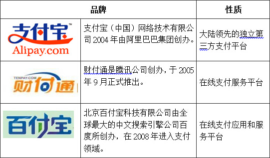支付宝早在2004年建立,至今已经超过十年,在大陆是领先的支付平台,用户超过3亿人。2013年6月,支付宝推出账户余额增值服务「余额宝」,用户不仅能够由「余额宝」获得到较高的收益,还能随时消费支付和转账。