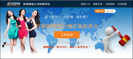 图六、抢贤网定位为首个中高级营销人才竞拍平台,包括市场、销售、管道、服务、品牌、公关、BD、推广、国际营销、网络营销、新媒体运营、互联网产品运营等各领域的营销精英。