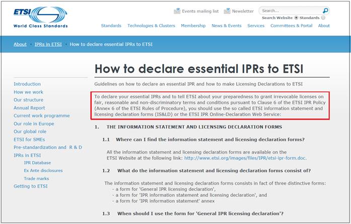 图1. 每一个人(即使不是会员),都可以去ETSI宣示自己的专利是标准专利