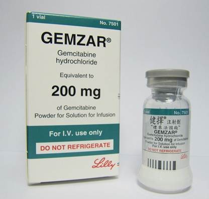 图一、礼来药厂用「吉姆赛它宾」(Gemcitabine)制成的癌症药物「健择注射剂」GEMZAR (Gemcitabine)
