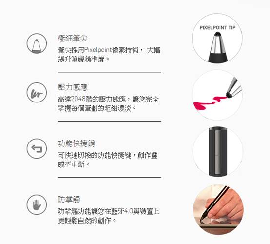 ,在平板计算机上做高精准度的书写,且能兼容所有电容式触控屏幕,像是iPad、iPhone、Mac BookTrackpad、Magic Trackpad、HTC、Samsung、Nokia等。