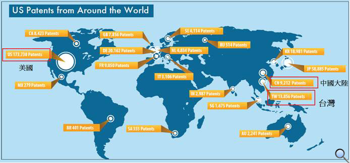 然而,专利是属地主义,所以一件专利的「地理位置」也很重要,像一件质量很好、市场利用价值很高的专利技术,如果只申请了台湾专利,那就很可惜,因为在国际市场上就变成是无用武之地。