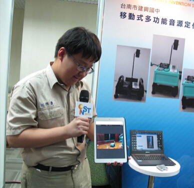「移动式多功能音源定位置物平台」的发明人是台南市建兴国中学生(下图左三),也是本次发明展中年纪最小的参展人。