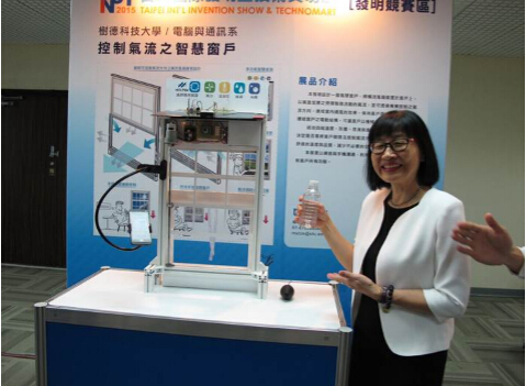 由树德科技大学计算机与通讯系发明的智能窗户,可将横流风扇装置于窗户上,以气旋加速之原理制造流动的气流,并可透过机构控制之气流方向,达成室内通风的效果,保持窗户原有之开阔视野。链接窗户之电动结构,可让窗户以机械方式开关。结合四组温度、灰尘、雨滴与风速传感器,依照其数据决定是否需将窗户关闭及控制气流方向,使室内环境达到最舒适的温度与质量,减少不必要的空调能源消耗。本装置以网络与手机沟通,利用APP观看参数与控制窗户所有功能。