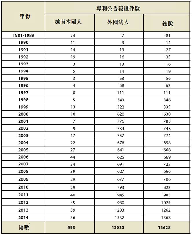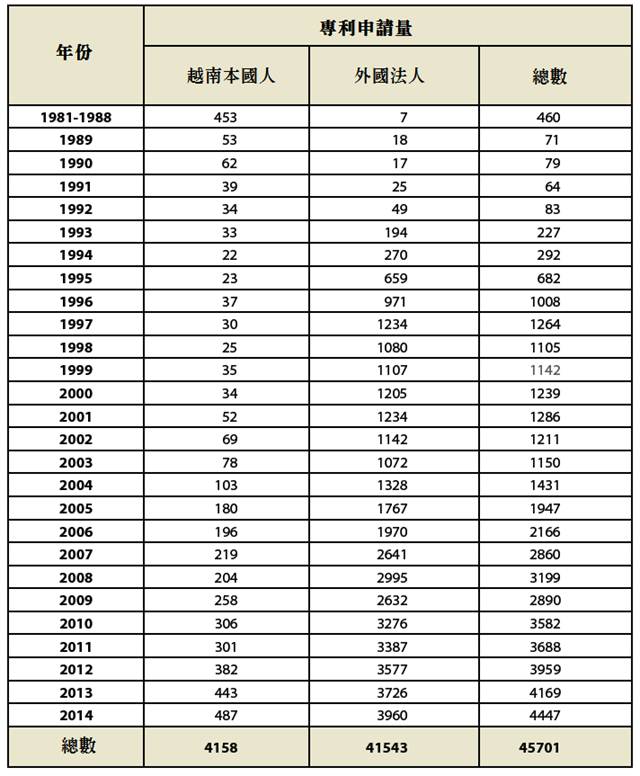 数据源:2014 Intellectual Property Activities Annual Report,越南专利局