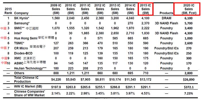 表三、2015年中国前十大主要IC制造者