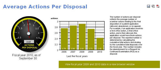 消化积案一直是USPTO努力的目标,早在2009年8月David J. Kappos上任USPTO局长时,他就在上任演说时告诉大众,他的第一个目标即是缩短专利申请案审查时间,未来将在10个月内寄发第一次的官方回复(OA)、在20个月结束审查作业。而现在仪表板功能,则是将他们的进度摊在大众的眼前,让大众可以随时检视。