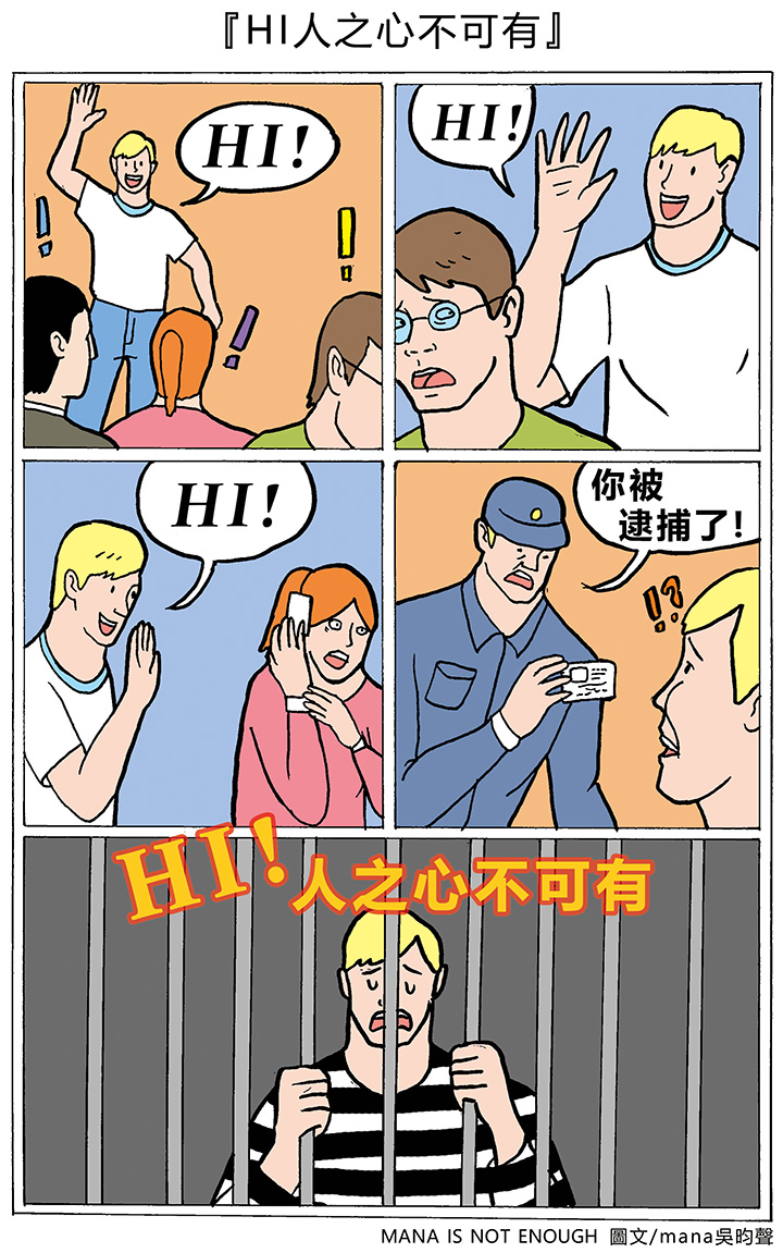 Mana的創作相當多元化,他喜歡以幽默輕鬆的方式來看嚴肅的人事物,畫作中總是充斥著諷刺的味道以及童話色彩的黑色幽默,對Mana作品有興趣的讀者,歡迎關注作者臉書Mana is not enough。