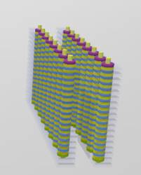图3(c) FanFET 3D-NAND Flash 串行结构俯视图:内存串行的排列方式是晶胞以行互相交错排列,然后行与行互相平行或是互相反平行成列而成