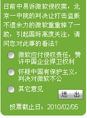 中易与微软公司之间,旷日持久的知识产权纠纷案,终于在历时两年半后获得了一个阶段性的结果。北京市第一中级人民法院于2009年11月对该案做出了一审判决,确认微软公司侵权,却也驳回了中易公司其它诉讼请求,至此,该案背后双方一直未公开的细节,也随着判决的公布逐渐浮出水面。本文请到许志勇律师试图根据已有的公开信息,为读者对该案做一简要介绍。