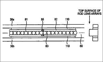Claim 7 :权利项组件,美国专利法 (35 U.S.C.) 第 112 条第二 项 “ spacers allowing an adjustment of an inclination of each of the rod lens arrays ”。说明书:“ An effect similar to the effect of projecting the adjustment screws 130 can be obtained by correcting the inclination of each rod lens array 80 by inserting, in advance, minute spacers having a thickness of about 0.03 mm or like members between the rod lens arrays 80 and the frame 30. ”。 详细情形 请参照此一专利的说明书中第九图及相关叙述。因此测验结果是:符合美国专利法,因此答案是 YES ,不扣分 。